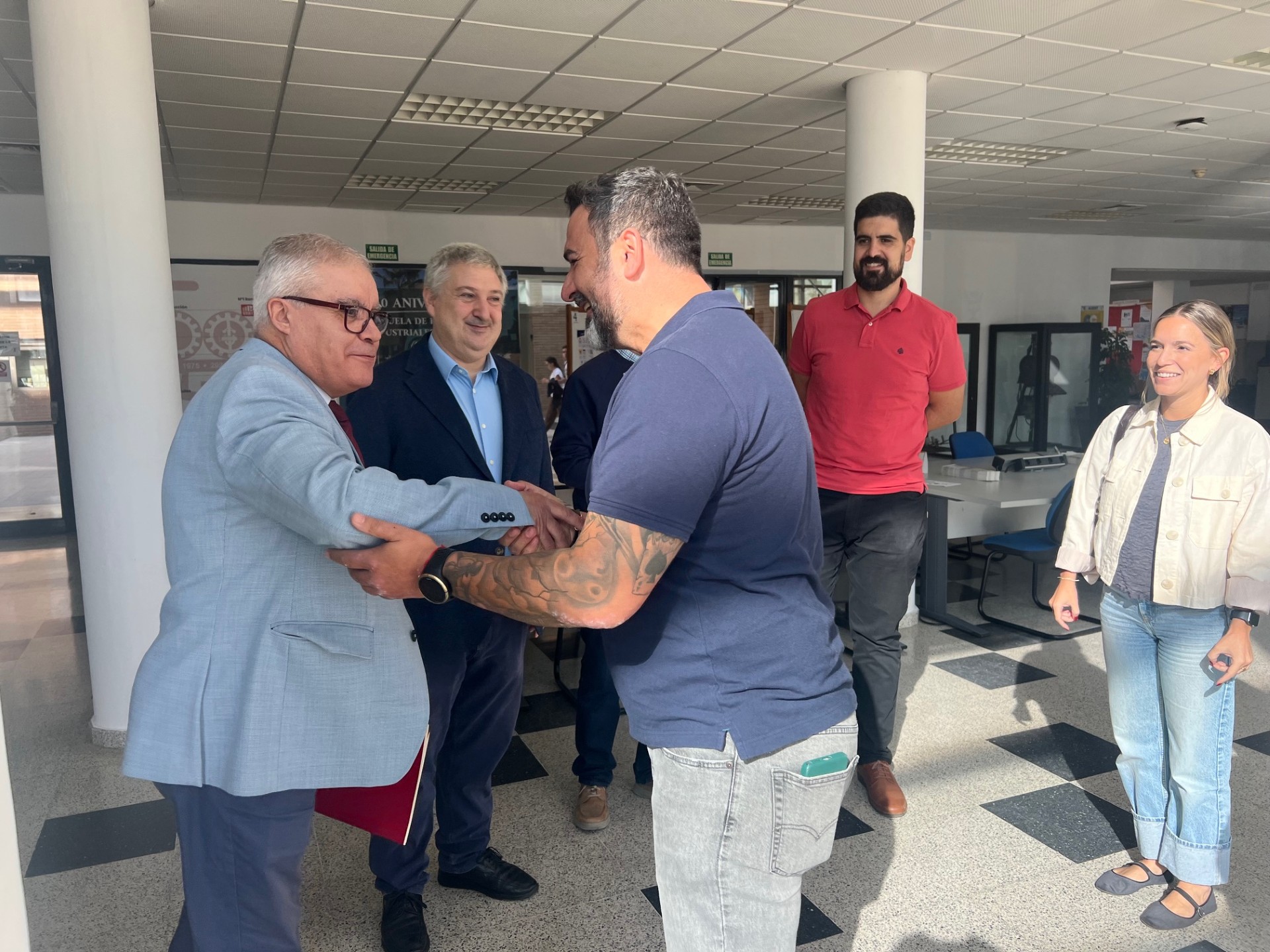 El encuentro contó con la presencia del rector de la UEx, Pedro M. Fernández Salguero, acompañado por el director de la Escuela de Ingenierías Industriales, José Sánchez, el subdirector de Relaciones institucionales, Carlos Galán, así como otros miembros del equipo de la Escuela de ingenierías.