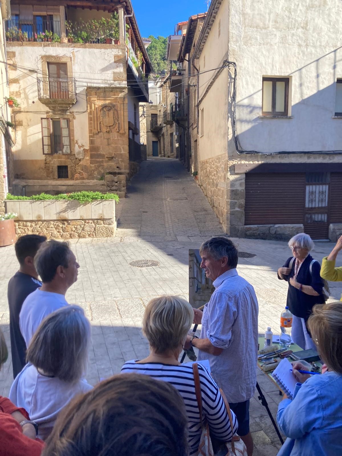 Michael Alford En GataLa quinta edición del curso de verano/otoño “Pintura de Paisaje” ha contado como artista invitado con Michael Alford, pintor figurativo británico conocido por sus paisajes, paisajes urbanos, marinas, retratos, desnudos y murales. El curso comenzó, tras el acto inaugural, con una demostración magistral de pintura de Alford, artista considerado un virtuoso en la pintura al aire libre: en poco tiempo realiza una obra de calidad in situ. En el resto de sesiones, se han realizado diferentes actividades de pintura urbana dentro del pueblo de la comarca cacereña de Sierra de Gata, y en sus zonas limítrofes como el río Árrago, la piscina natural o el jardín botánico y vistas panorámicas desde sus miradores.