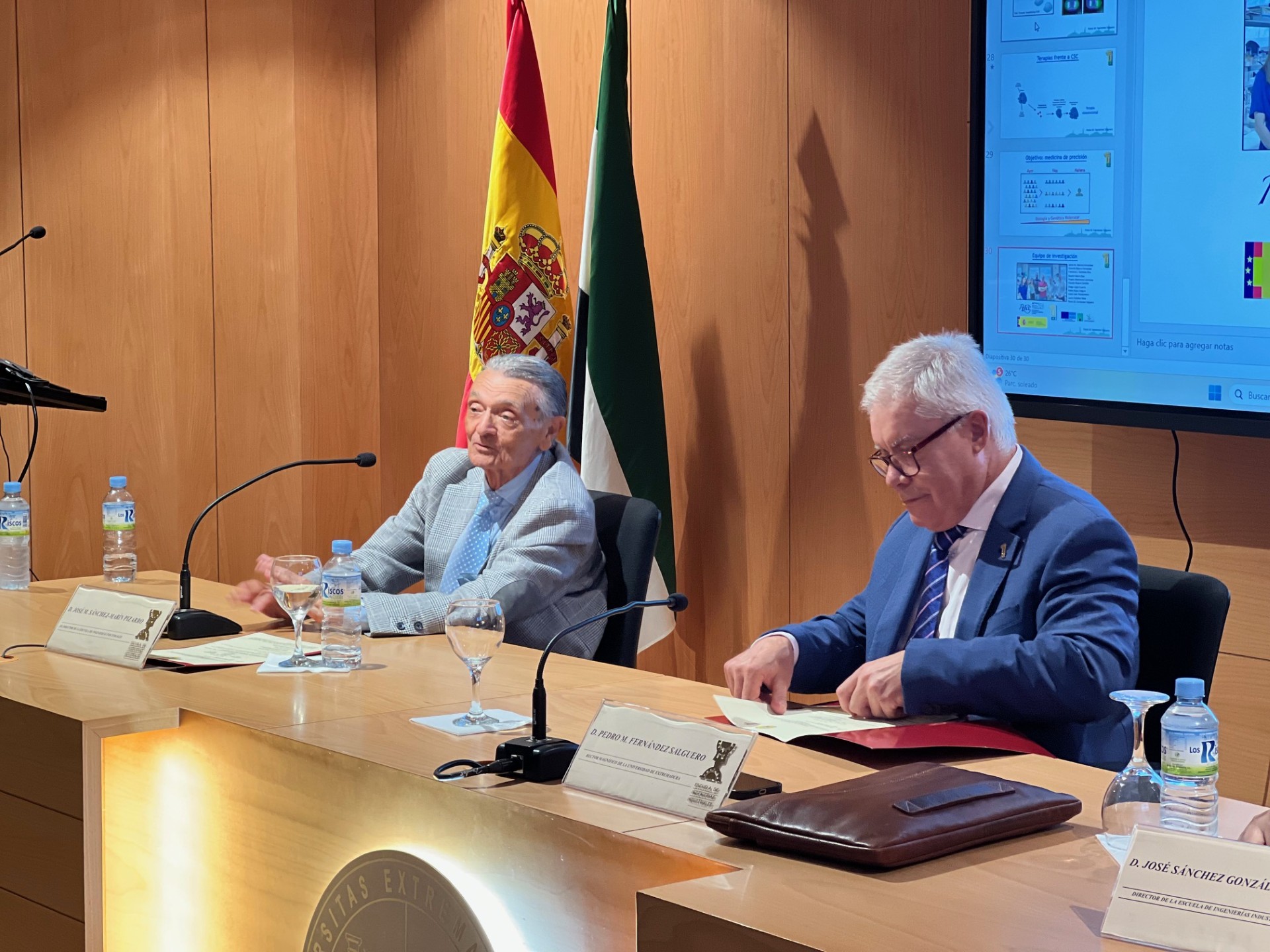 16/10/2025. La Escuela de Ingenierías Industriales de la Universidad de Extremadura ha conmemorado medio siglo de historia con un solemne acto académico celebrado en su sede, en el que se han dado cita autoridades universitarias, profesorado, alumnado y antiguos miembros de la comunidad académica. El evento, estuvo presidido por el rector de la UEx, Pedro M. Fernández Salguero, acompañado por el director de la Escuela, José Sánchez González y el antiguo director José María Sánchez-Marín Pizarro.