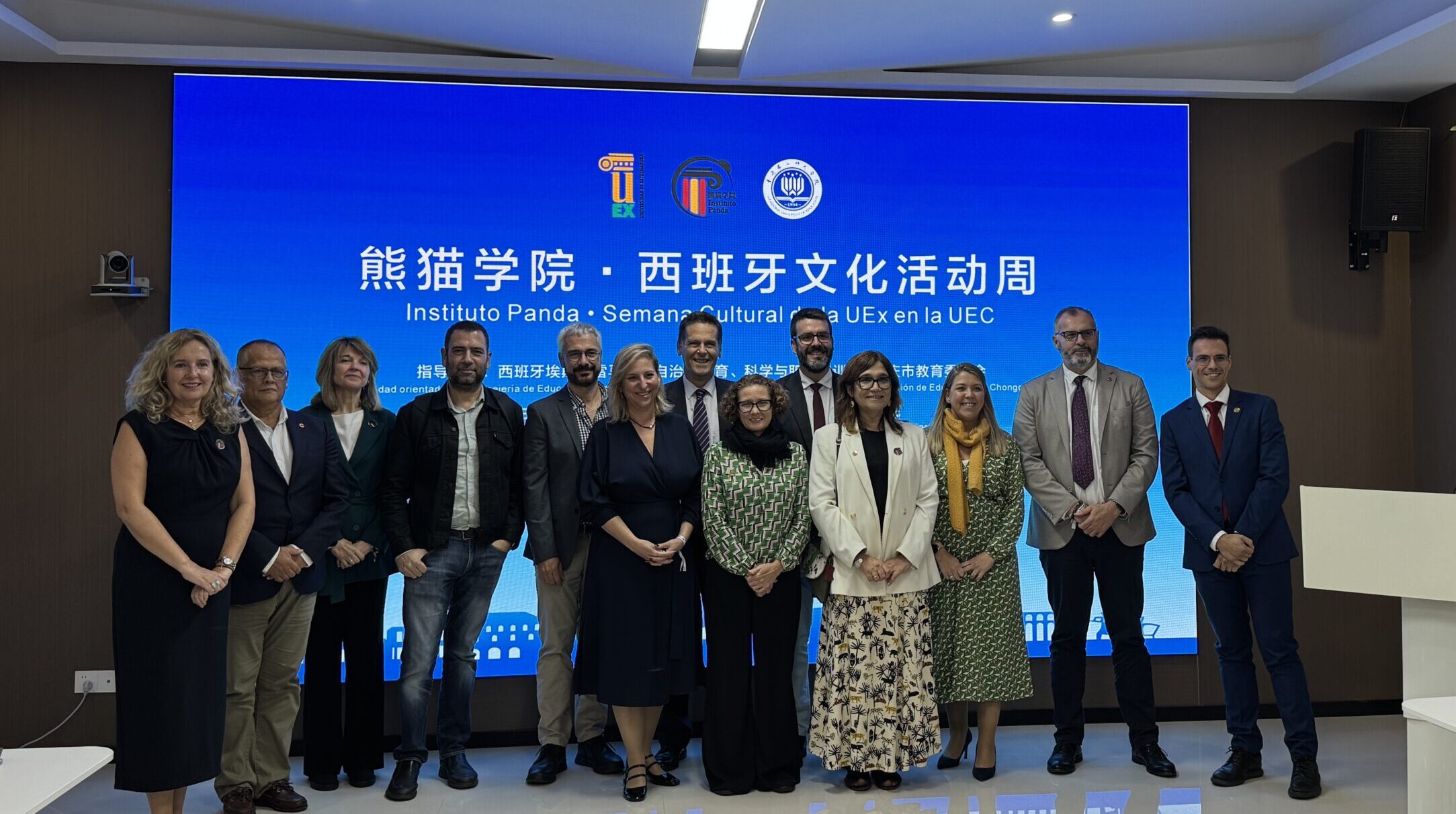 28/10/2025. La Universidad de Extremadura (UEx) ha iniciado esta semana en Chongqing una intensa agenda cultural y académica para estrechar su colaboración con la Universidad de Educación de esta ciudad china. Durante la Semana Cultural de Extremadura en China, que se celebra del 27 de octubre al 1 de noviembre, una delegación universitaria participa en talleres, exhibiciones artísticas y encuentros institucionales que consolidan el vínculo de cooperación educativa y cultural entre ambas instituciones en el marco del Instituto Panda, que tiene como objetivo fortalecer la internacionalización, promover programas docentes compartidos y difundir las tradiciones culturales de ambos países.