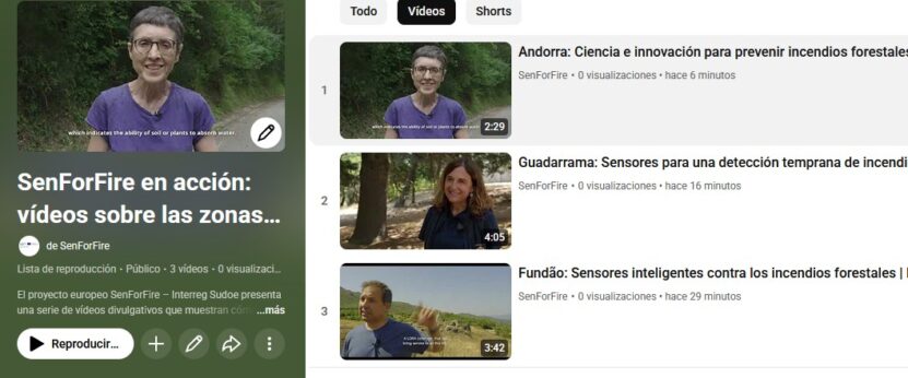 Para visibilizar este trabajo y el esfuerzo de colaboración que conlleva, SenForFire ha realizado una serie de vídeos divulgativos ya disponibles en su canal oficial de YouTube. Estas producciones, grabadas en el propio terreno, documentan el proceso de instalación de los sensores y la estrecha colaboración entre investigadores, tecnólogos, técnicos y profesionales de la lucha contra los incendios forestales. En ellas se muestra la participación activa de entidades locales, equipos de investigación y profesionales del Ministerio para la Transición Ecológica y el Reto Demográfico (MITECO), servicios forestales y cuerpos de bomberos, quienes han sido clave en el despliegue de los equipos y las labores de formación práctica en campo.