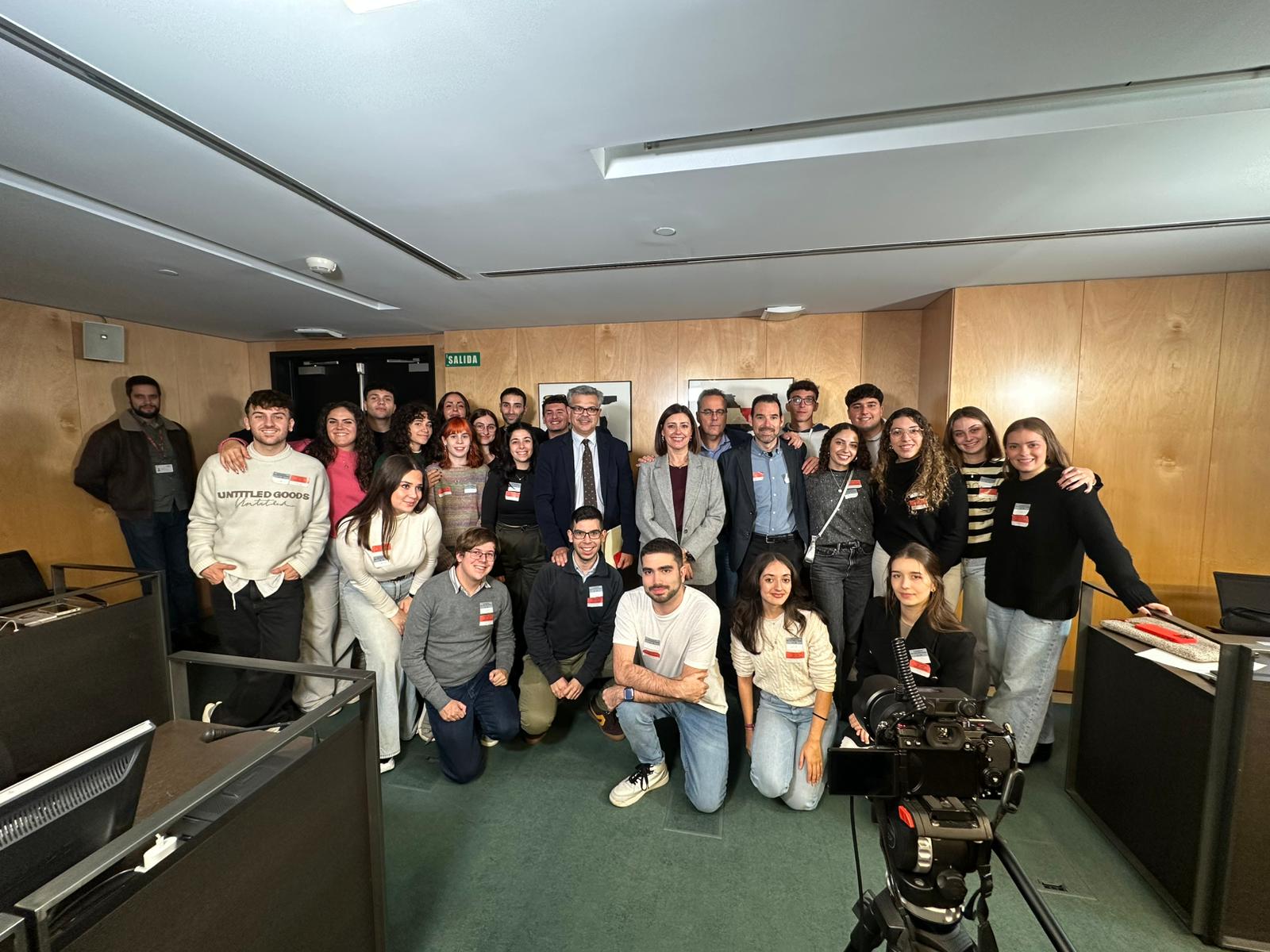 20/11/2025. 22 estudiantes de los grados en Comunicación Audiovisual y Periodismo y de los dobles grados en Comunicación y Documentación, acompañados por el profesor, Daniel Martín, han sido recibidos por los diputados por Badajoz, Maribel García y Juan Antonio González. El objetivo de este encuentro ha sido conocer más de cerca la institución parlamentaria y el trabajo que realizan los profesionales de los medios de comunicación.