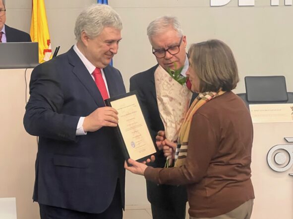 Uno de los momentos más emotivos del acto fue el espacio In memoriam, en el que se proyectó un vídeo homenaje al personal de la Escuela fallecido, seguido de la entrega de rosas y diplomas a sus familiares por parte del rector y el director del centro. Un gesto cargado de simbolismo bajo la premisa de que “familia significa que nadie se queda atrás ni es olvidado”.