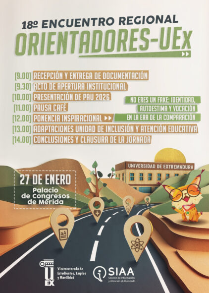 Asimismo, Rocío Blas ha reconocido el trabajo del equipo del SIAA por la organización de unas jornadas que permiten “cuidar y reforzar la relación de la UEx con los orientadores, que acompañan al alumnado en la toma de decisiones y en la búsqueda de itinerarios acordes a sus inquietudes, intereses y talentos”.