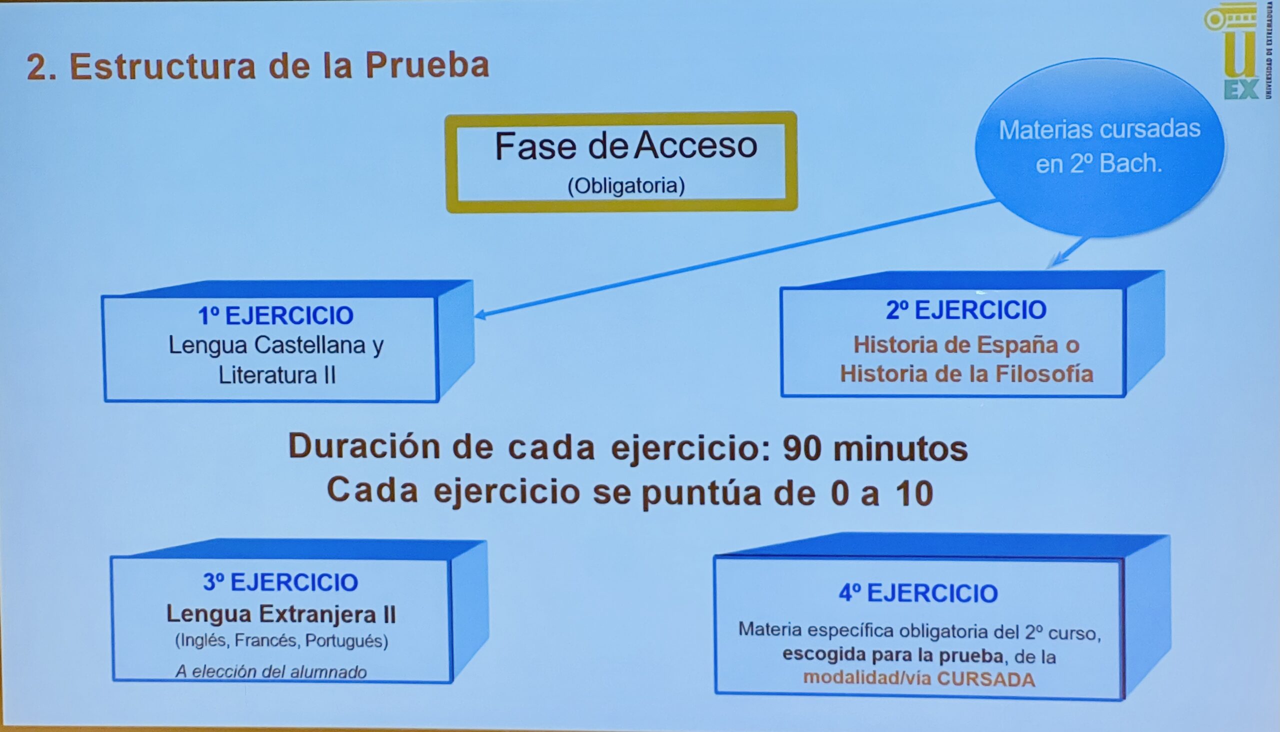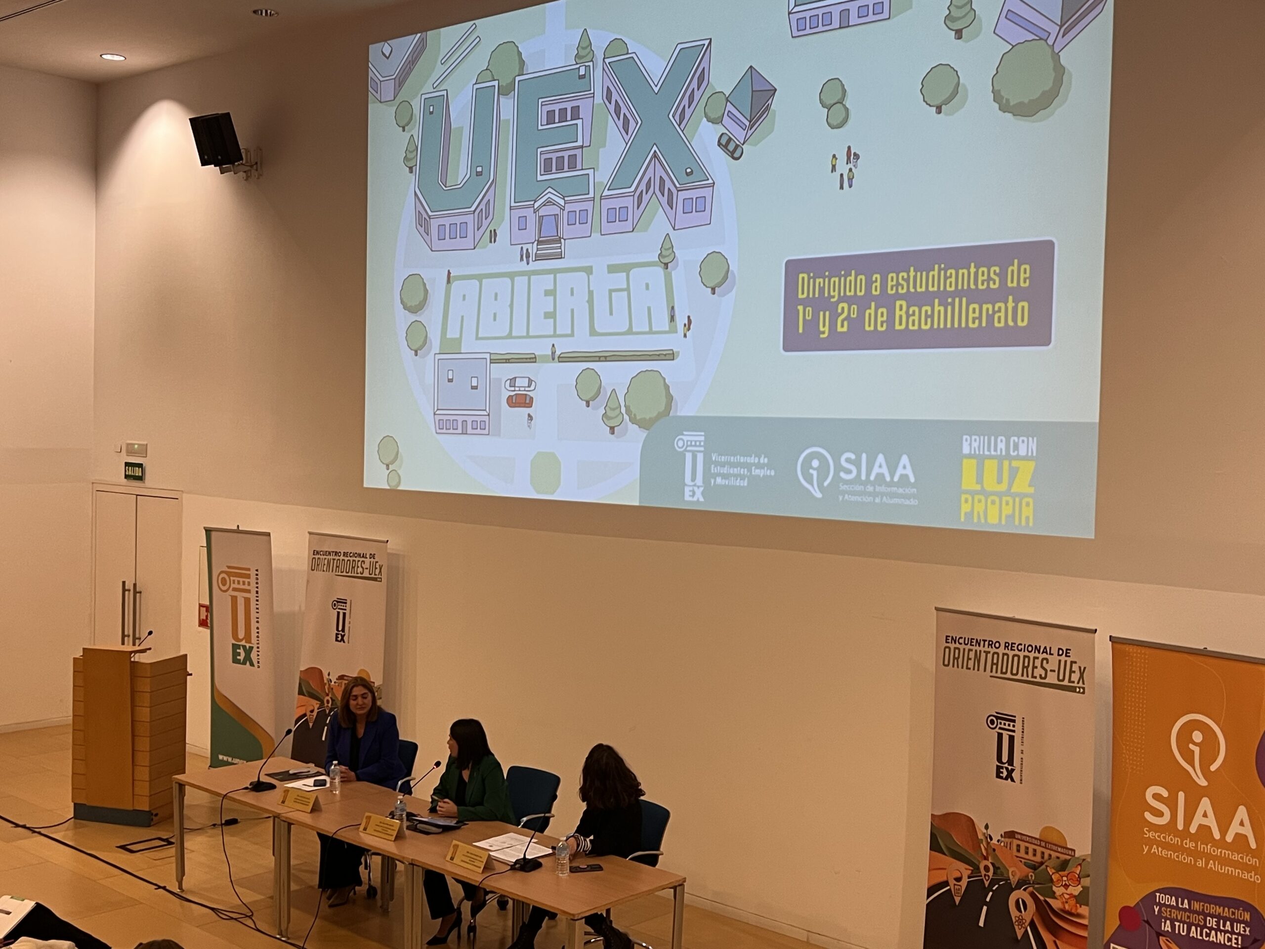 En este bloque informativo han intervenido Lara Valero, del Servicio de Acceso de la UEx, María José García Díaz, jefa del Servicio de Coordinación Educativa de la Junta de Extremadura, y José Antonio Pariente, presidente del tribunal de la PAU, quienes han resuelto dudas planteadas por los asistentes y han ofrecido información práctica sobre el funcionamiento del proceso de acceso a la universidad.