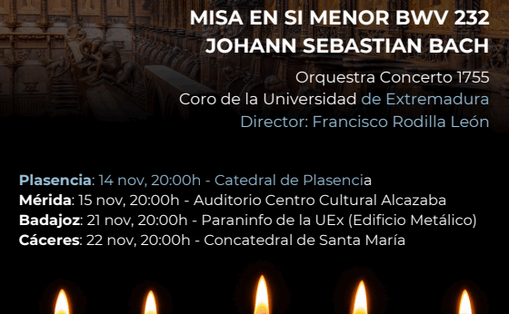 La formación interpretará la Misa en si menor de Johann Sebastian Bach, acompañada por la Orquestra Concerto 1755 y solistas internacionales 06/11/2025. El Coro de la Universidad de Extremadura conmemora su 50ª aniversario con un ciclo de conciertos extraordinarios durante el mes de noviembre en Plasencia, Mérida, Badajoz y Cáceres. Para celebrar medio siglo de […]